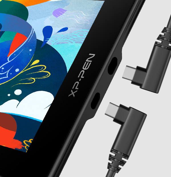 The 3-in-1 cable that supports HDMI signal transmission allows you to connect the drawing display to a PC. The full-featured USB-C port makes connection easier with devices such as PCs and Android phones, allowing for a tidy desktop.