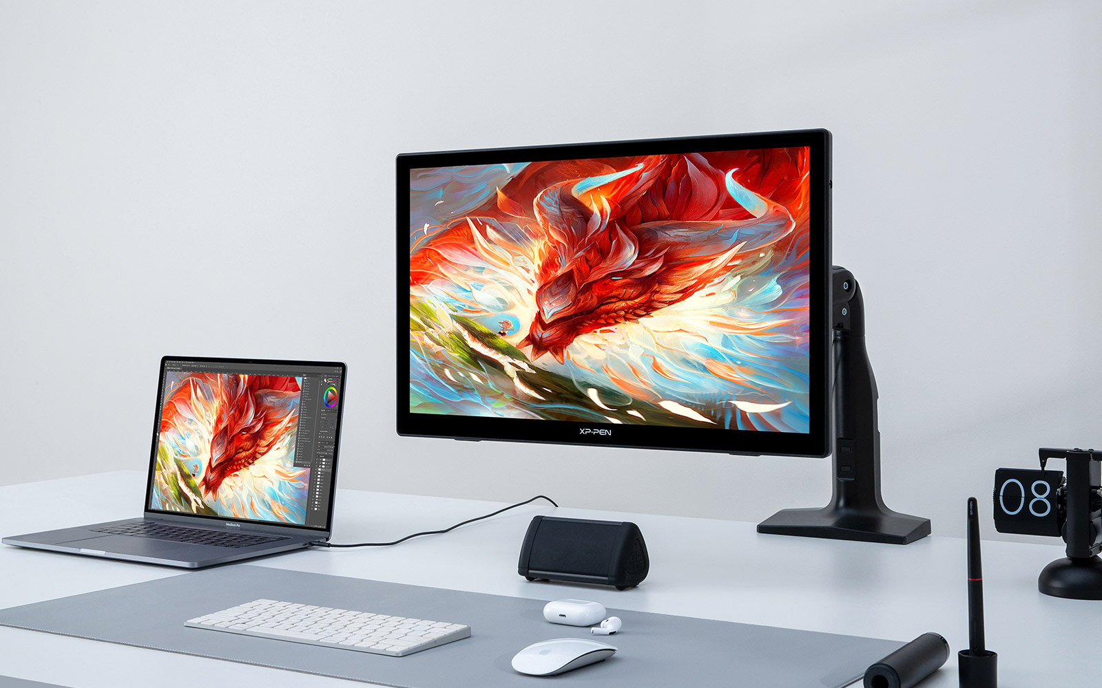 The Artist 24 (FHD) is more than a drawing display. Unlock more possibilities by extending or projecting contents to this 23.8-inch big screen for an expansive, immersive viewing experience, whether for creation, games, videos, or entertainment.