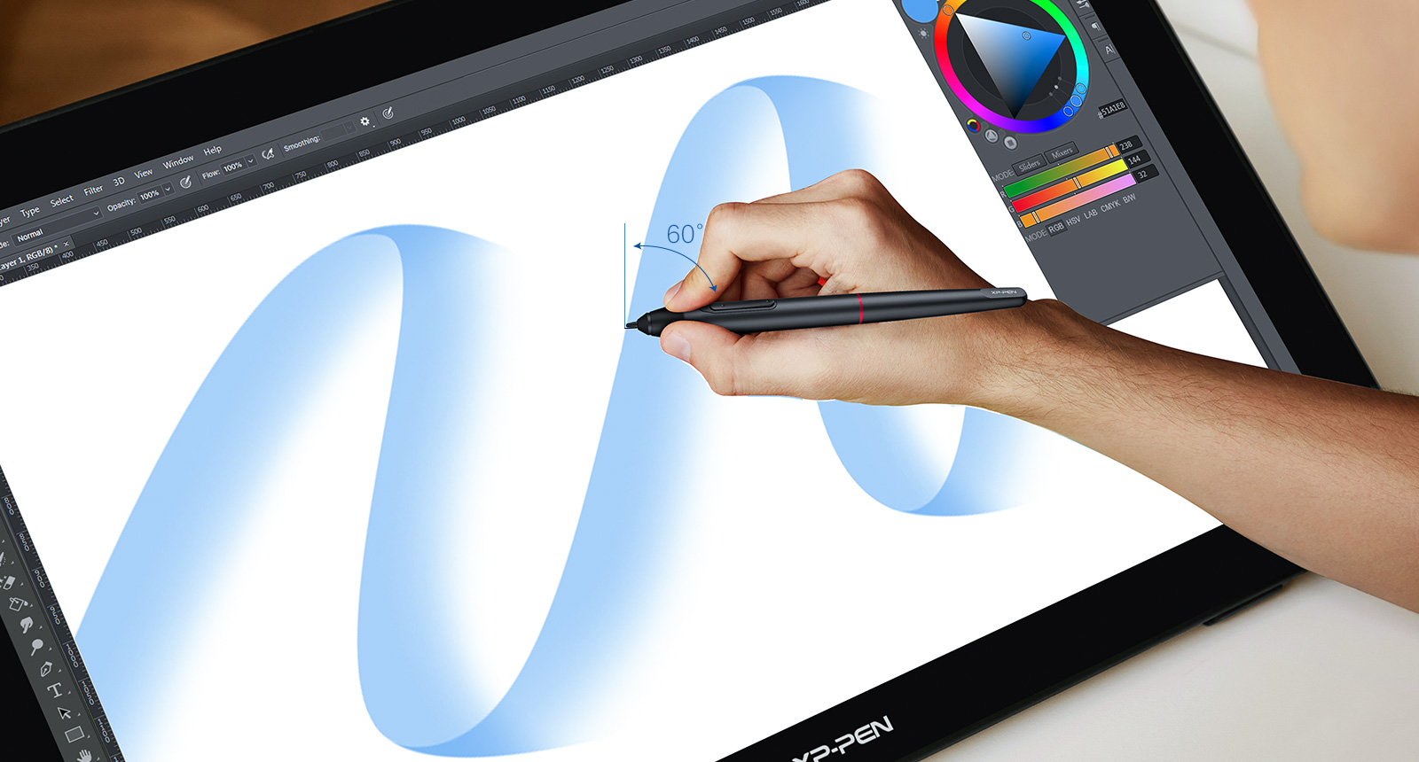 Battery-free P05R stylus lets you focus more on creation without disruption of charging. 8192 levels of pressure sensitivity pinpoint every stroke, light or heavy, to ensure smooth and delicate line presentation. With 60° tilt recognition, simply tilt your pen to add shades to your creation.