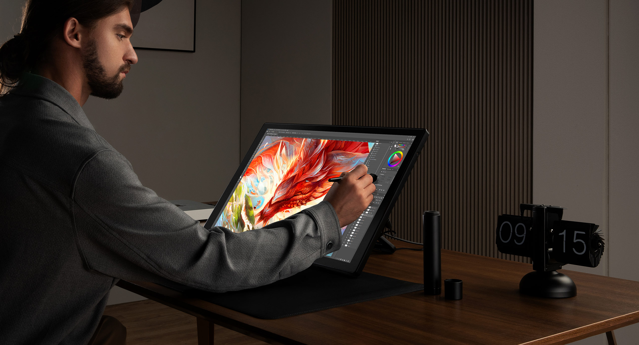 The 23.8-inch 1920x1080 display is painstakingly crafted with fully-laminated technology and anti-glare matte texture. So it delivers a sensation of drawing on paper and brings out every detail of exceptional clarity. Now time to release your inner artist.