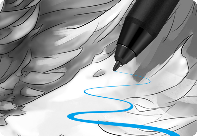 The stylus supports up to 60 degrees of tilt function and has 8192 pressure sensitivity levels. Effortlessly create exquisite strokes and seamless shading.