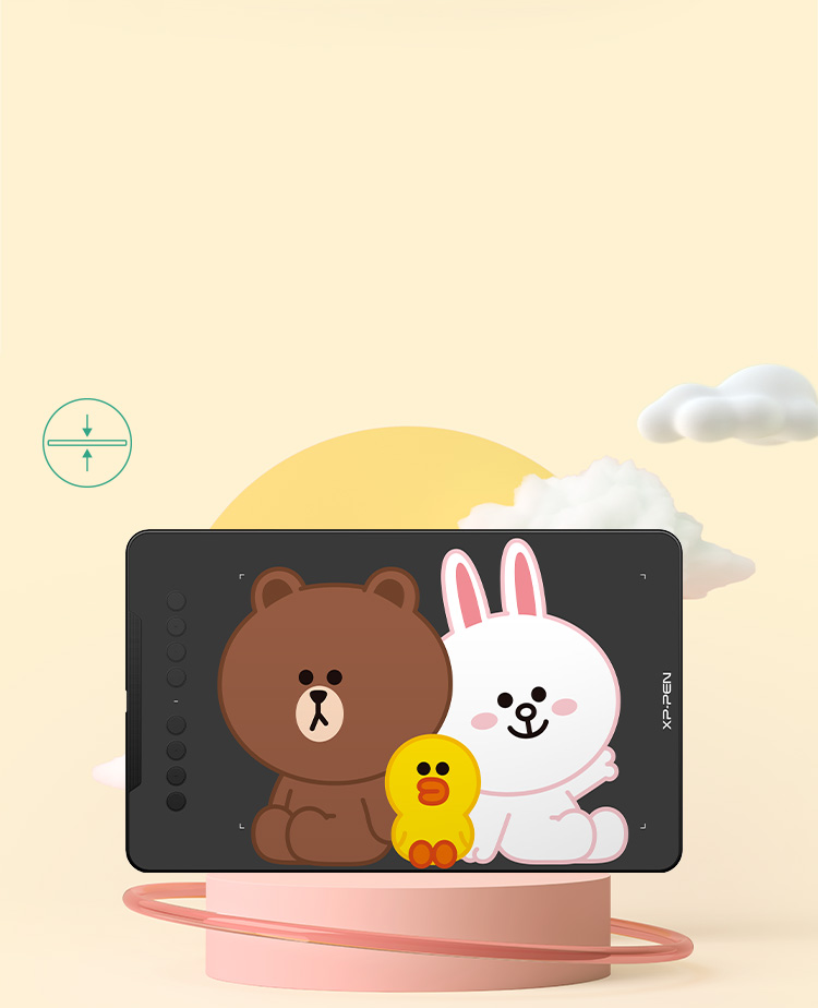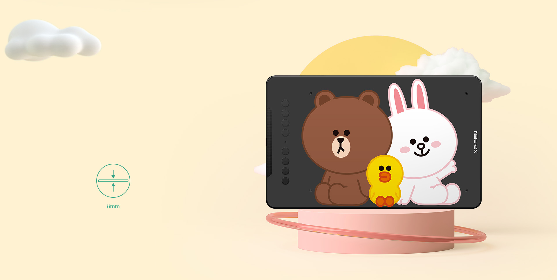 Deco 01 V2 LINE FRIENDS Edition gives you an expansive workspace area, measuring 10 x 6.25, and the stylus pen feels so free on it. At just 8-mm thick, it shows you just how slim and hot a graphics tablet can be.