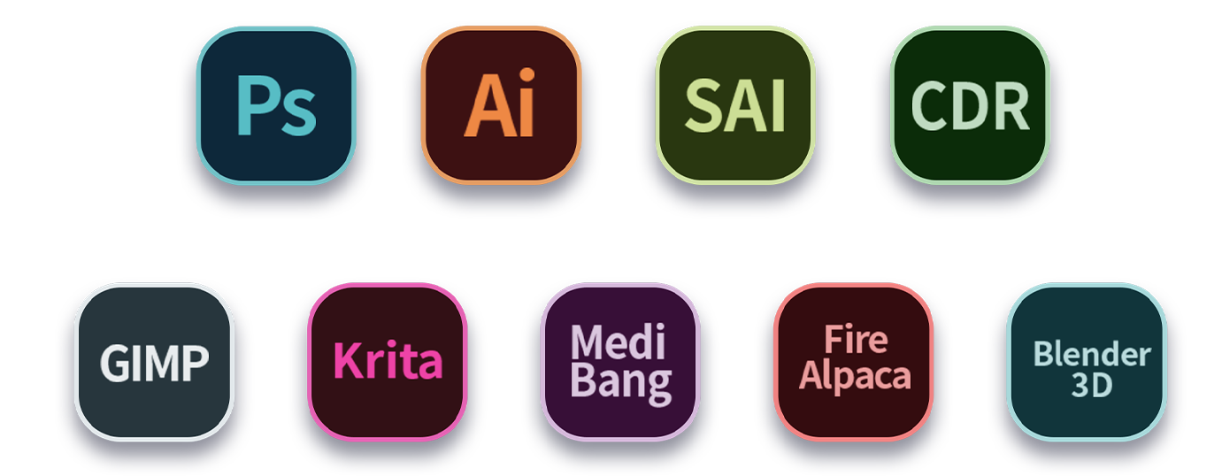 It works with most major software including: ibis Paint X, FlipaClip, Medibang, Autodesk Sketchbook, Zenbrush and Artrage, etc.,