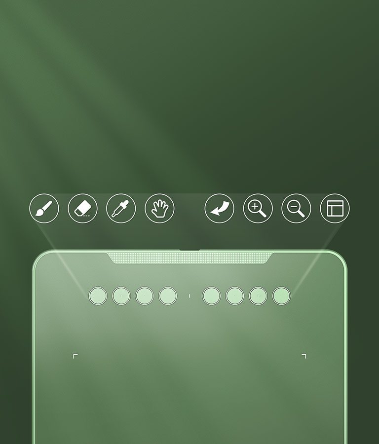 The Deco features eight, round, customizable express keys that fit easily to your fingertips.