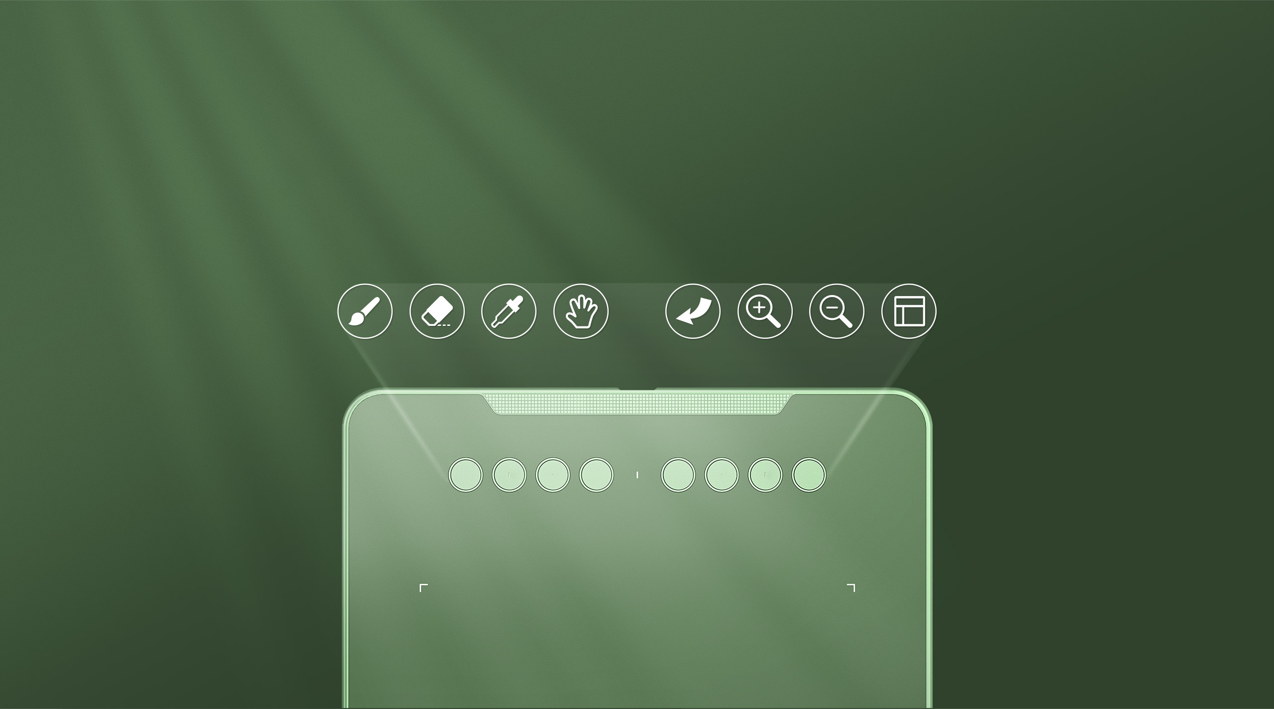 The Deco 01 V2 lights up at the ends of the drawing area, and comes with adjustable brightness levels, so you can work and create in your preferred lighting environment.