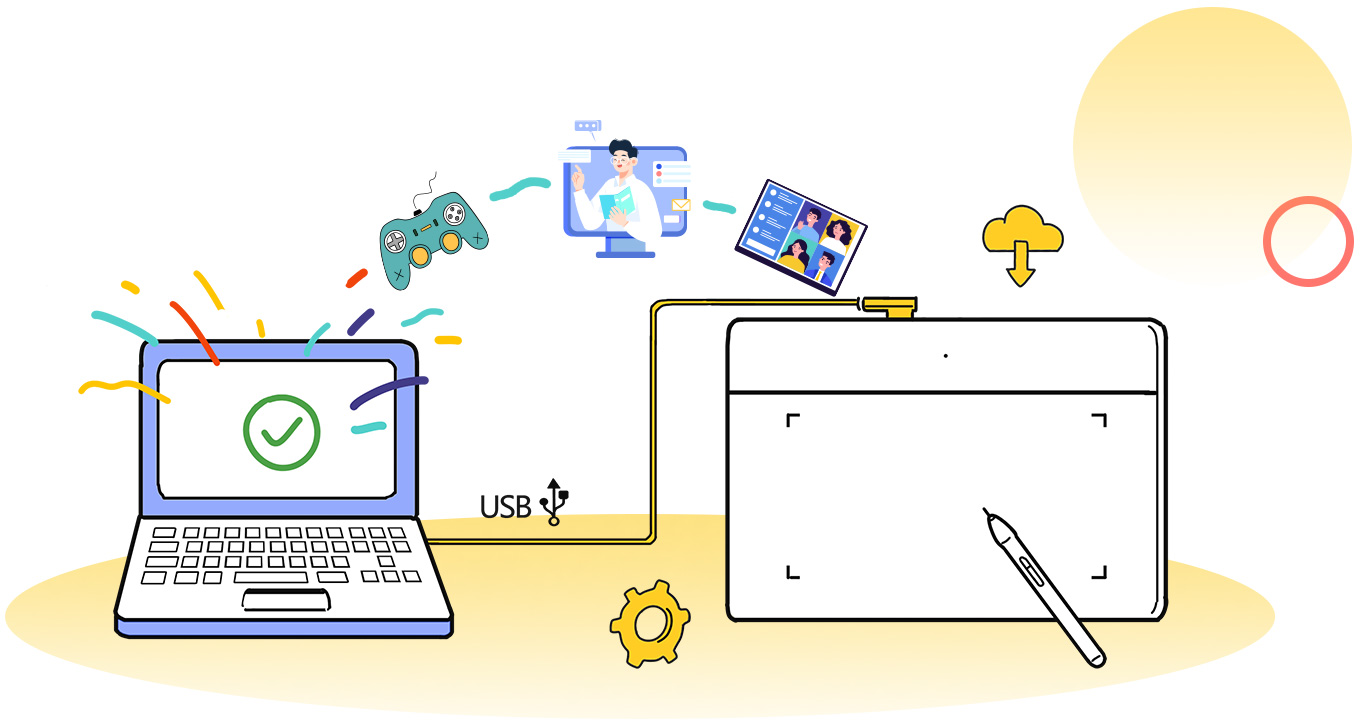 Deco Fun is designed for easy plug-and-play. Plug it in and you are ready to start your creative journey. For advanced settings such as pen pressure, download the driver and follow a simple 3-step installation.