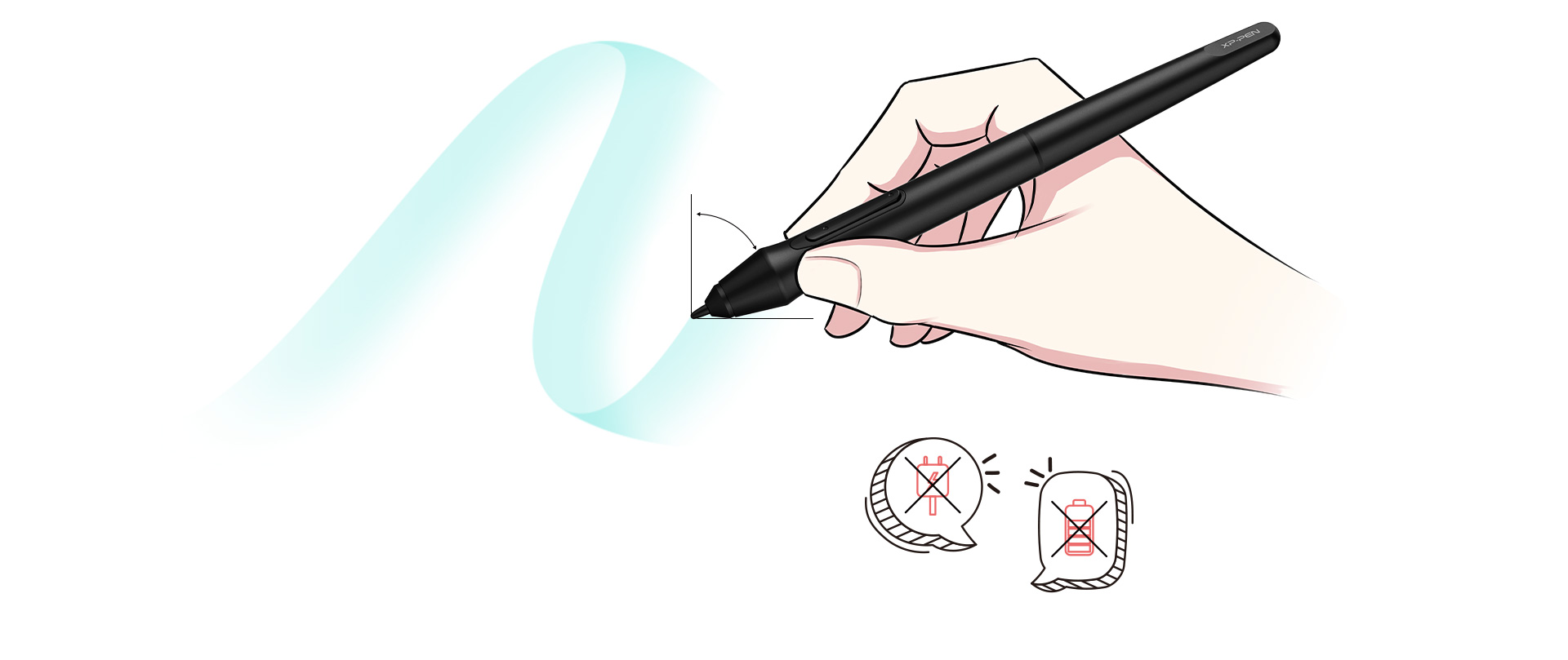 The Deco mini7W comes with a Battery-Free Passive Stylus P05D that lasts for long hours, allowing you to create without interruption. The stylus also supports up to 60 degrees of tilt action, making shading easy and effective.