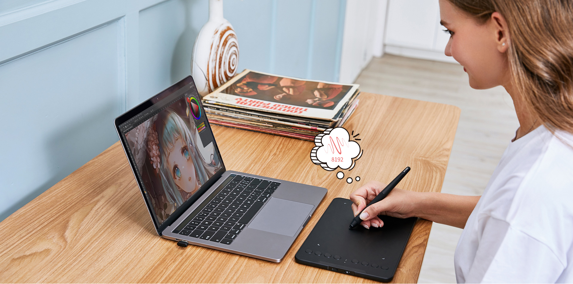 With up to 8,192 pressure sensitivity levels, the stylus creates natural-looking lines of various widths, allowing you to produce exquisite strokes with ease.