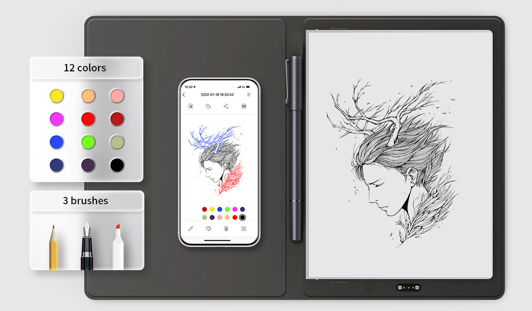 Supports 3 brushes, 12 colors and 5 thicknesses, flourishing your work better than ever.