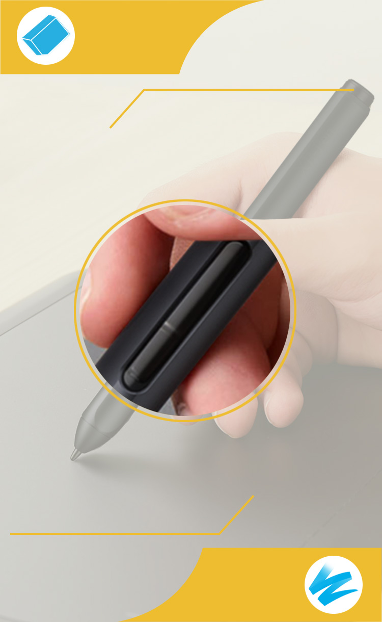 Our stylus's barrel buttons allow you to toggle between pen and eraser modes instantly, making the art process more efficient and less frustrating. Both buttons are customizable within the tablet driver's interface.