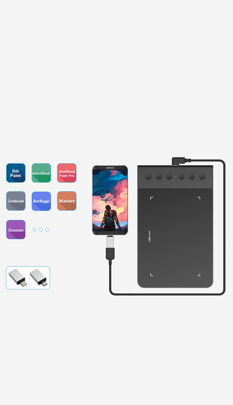 The XPPen G640S now supports connections with Android devices 6.0 and above. It is compatible with XPPen’s new Deco Draw Drawing App and also works with most third-party major software like Medibang, Autodesk Sketchbook, Zenbrush, Artrage, Microsoft Onenote, Microsoft Word, Markers and more, bringing you an all new creative experience with extreme portability and potential.