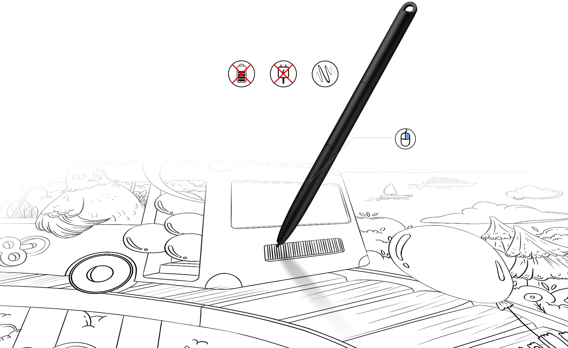 The Battery-Free Stylus Pen does not require batteries or charging and supports long hours of uninterrupted drawing. With 8,192 levels of pressure sensitivity, the stylus naturally presents lines of various widths and enables more exquisite expression of lines and strokes with ease.