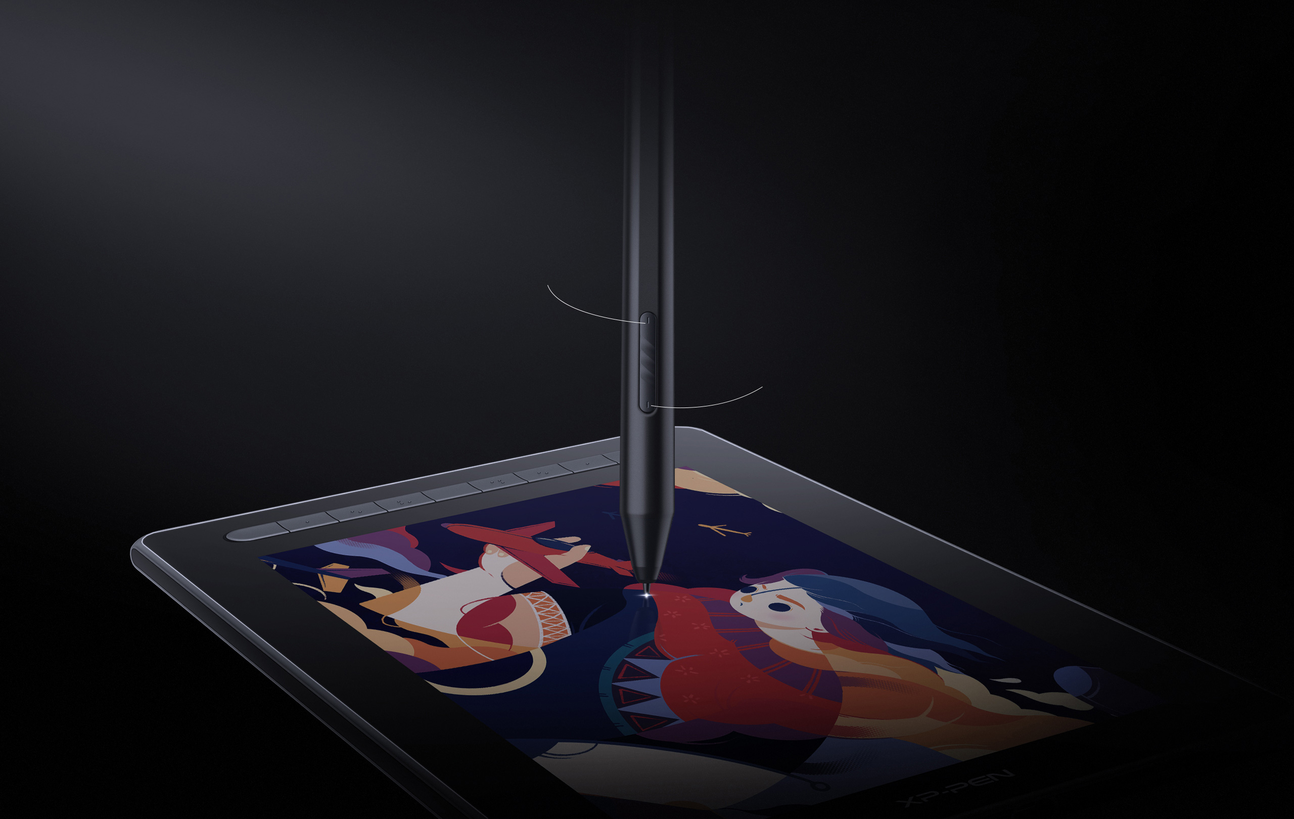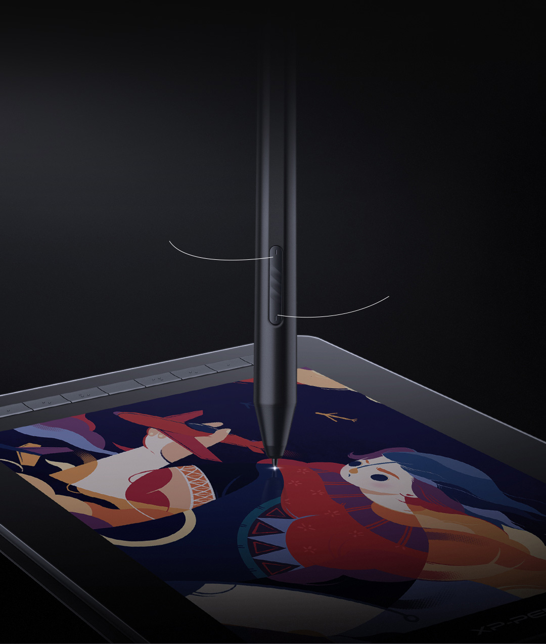 The stylus body comes with two handy shortcut keys to switch between brush and eraser by simply pressing them. Saving you from the trouble of moving to the display to click. The creation has never been so efficient and convenient.