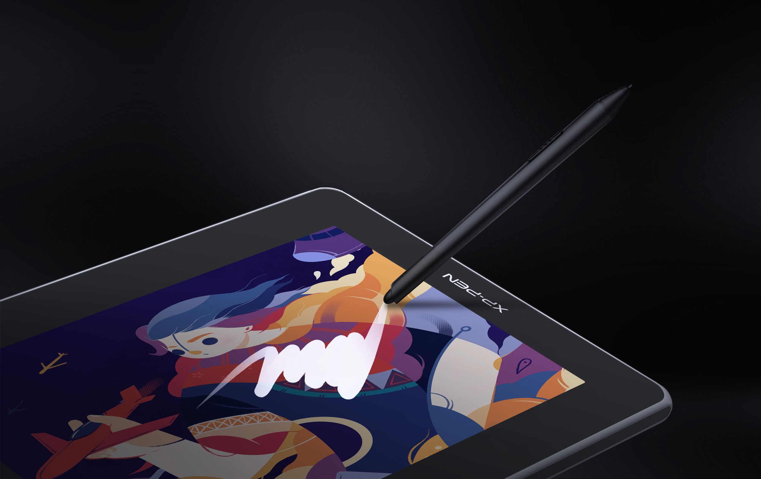 The X3 Elite Plus’ tail is integrated with a ready-to-use digital eraser of 8192 pressure levels — excels at both slight and heavy erasing without resorting to function setup so you can focus on drawing.