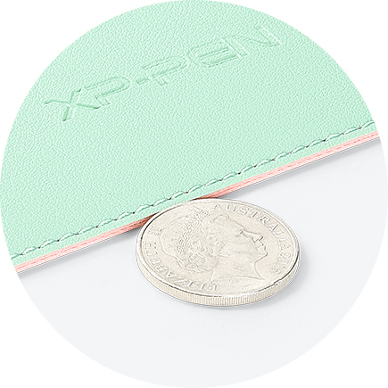 The dual-side desk pad design features PVC leather, which feels more comfortable when your skin touches its surface. The eco-friendly material creates a cozy space for you. And to give you an even more comfortable feeling, the XPPen Desk Pad is carefully designed to have proper thickness for writing, and weighs enough to stay in place on the desk.